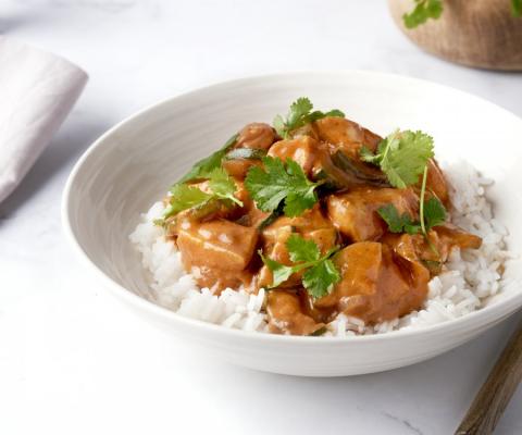 - Serveer de kip tikka masala over de rijst en werk af met blaadjes koriander.