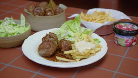 Luikse balletjes met frietjes en sla